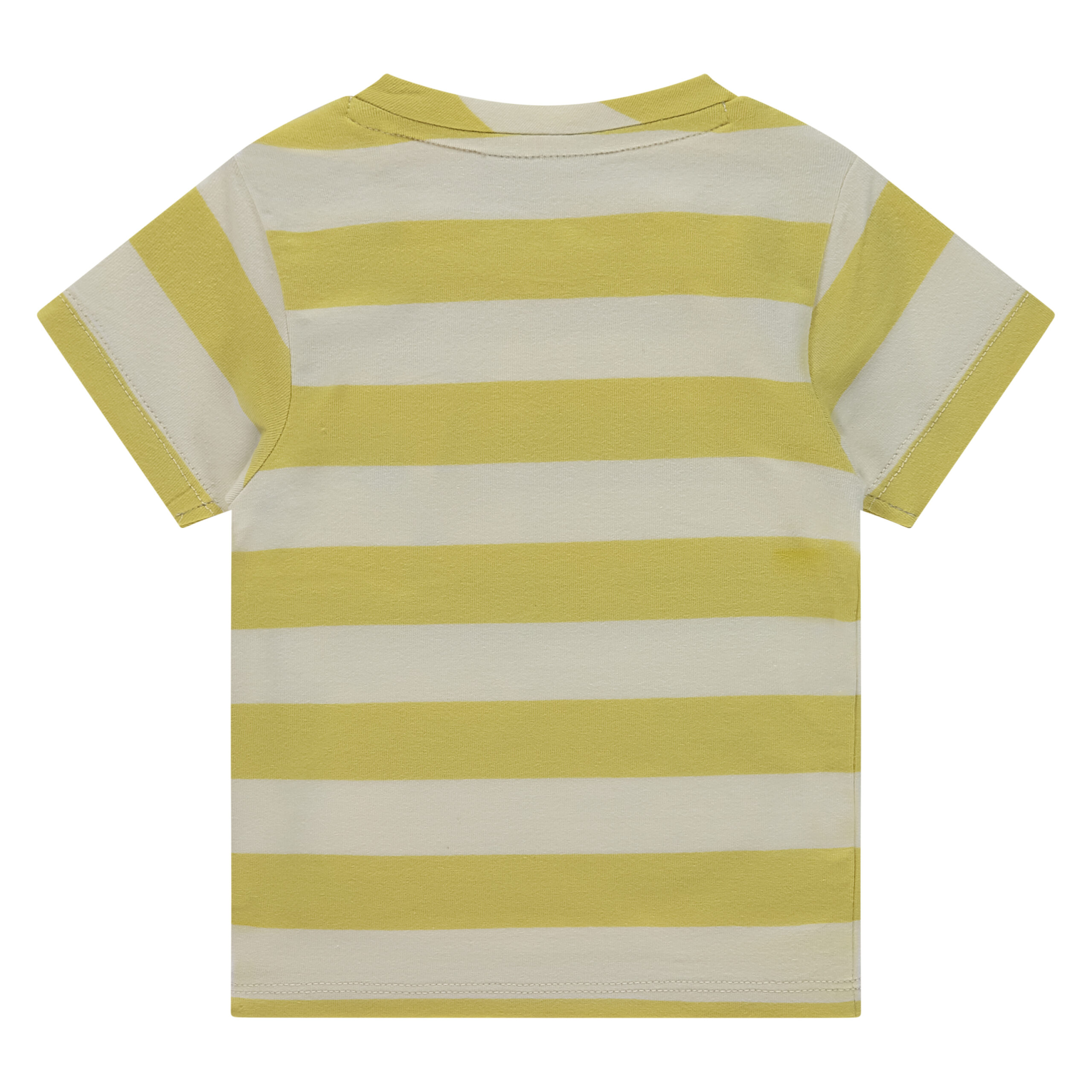 Βρεφική κοντομάνικη ριγέ μπλούζα σε λεμονί απόχρωση.