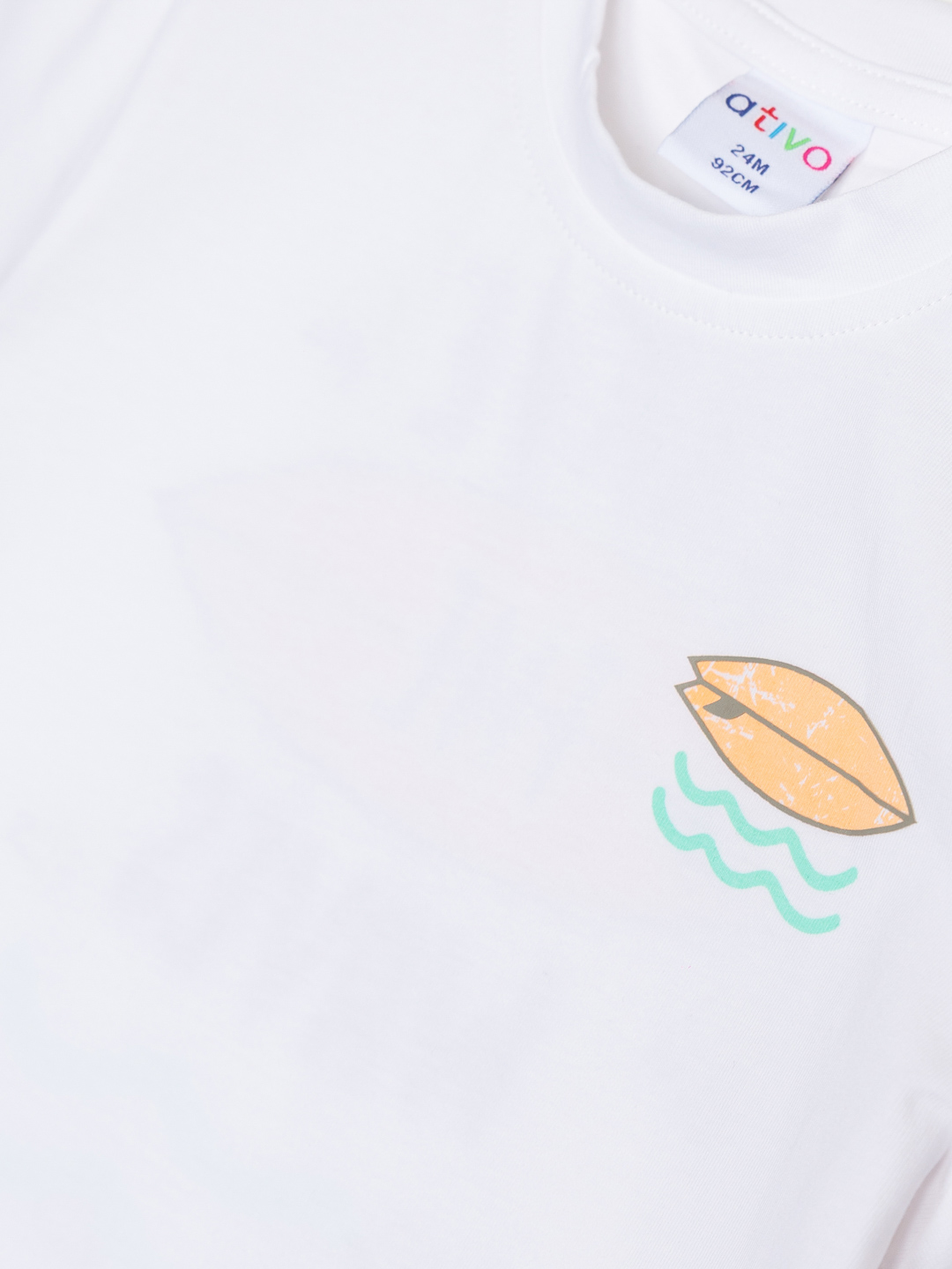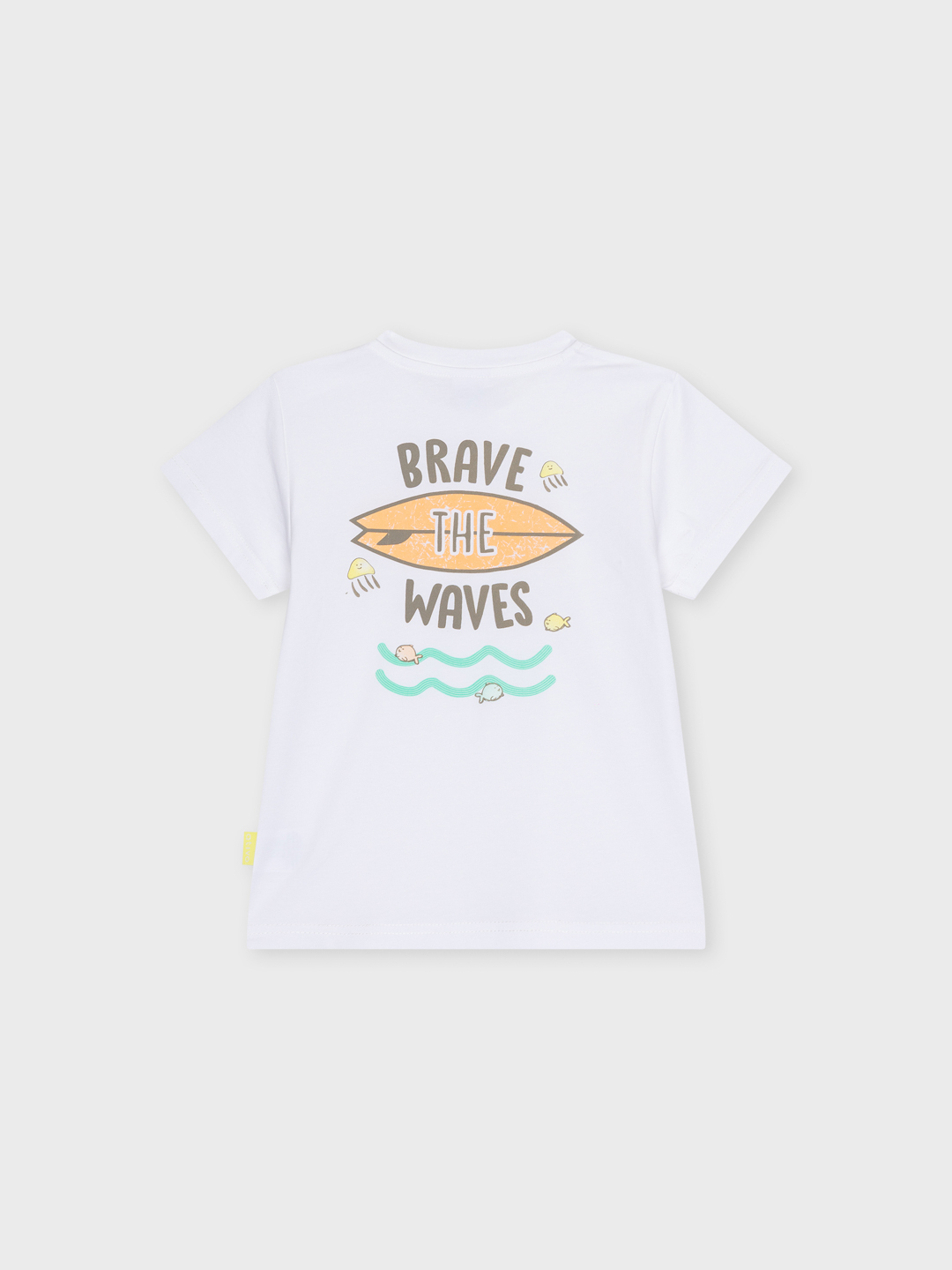 Βρεφικό λευκό κοντομάνικο μπλουζάκι με σχέδιο στο πίσω μέρος “Brave the waves”