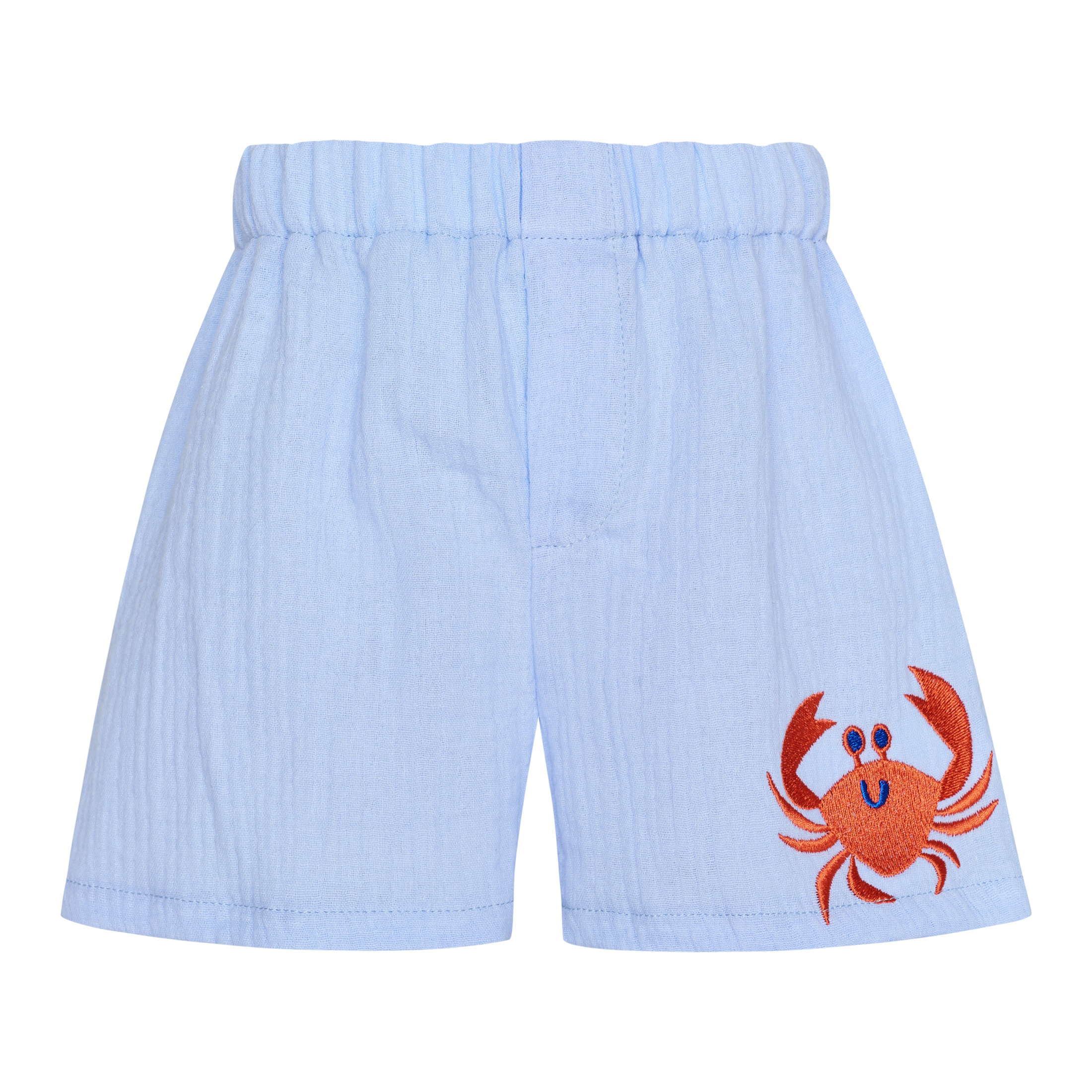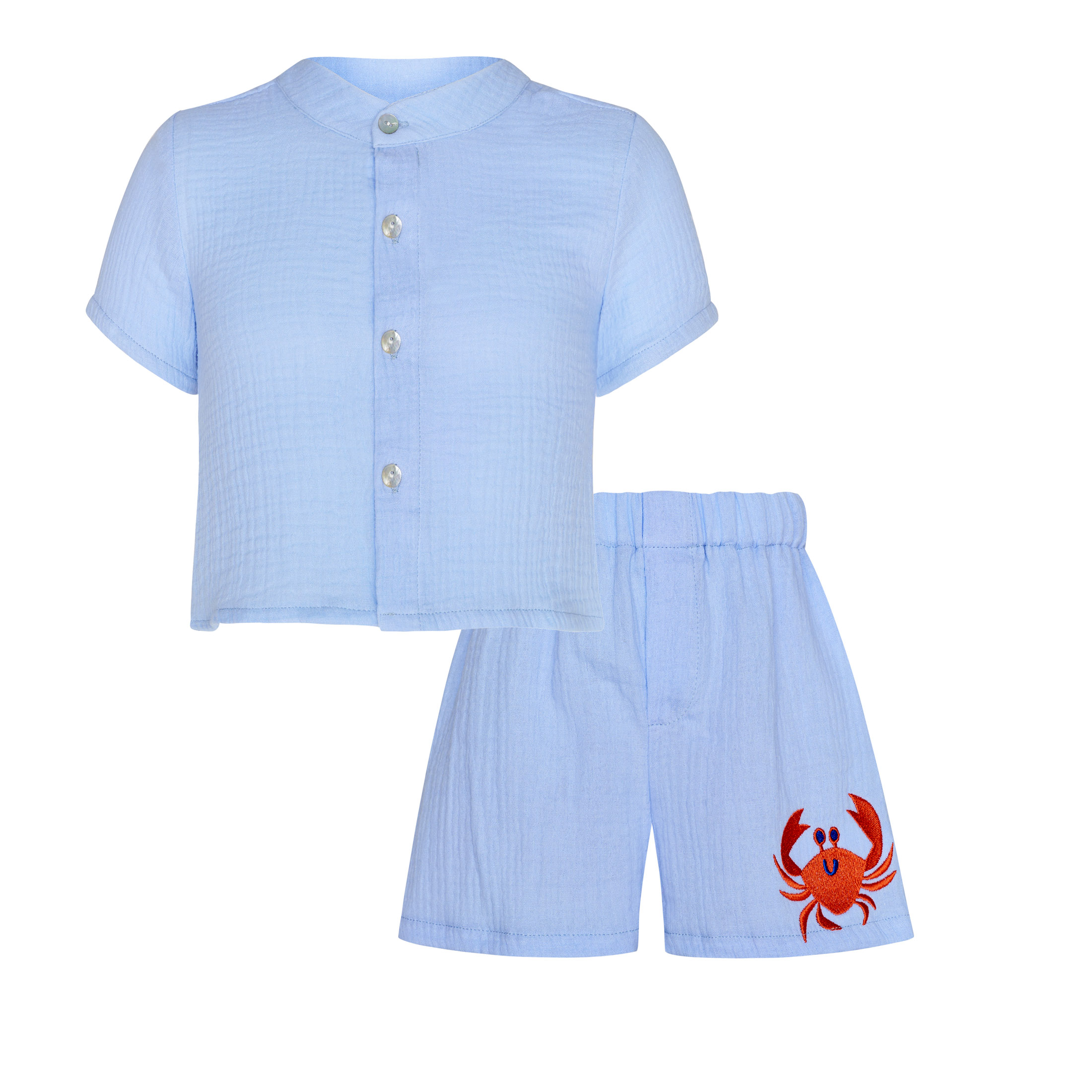 Βρεφικό σετ baby blue με πουκάμισο και βερμούδα και σχέδιο καβουράκι.