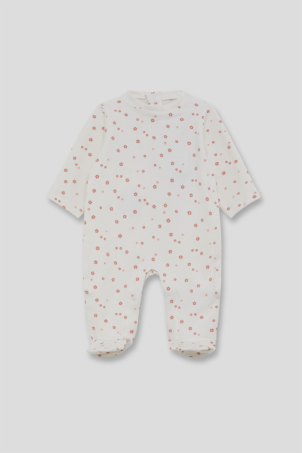 Βρεφικό ολόσωμο φορμάκι που κλείνει στο μπροστινό μέρος με φερμουάρ και έχει τα πατουσάκια μέσα