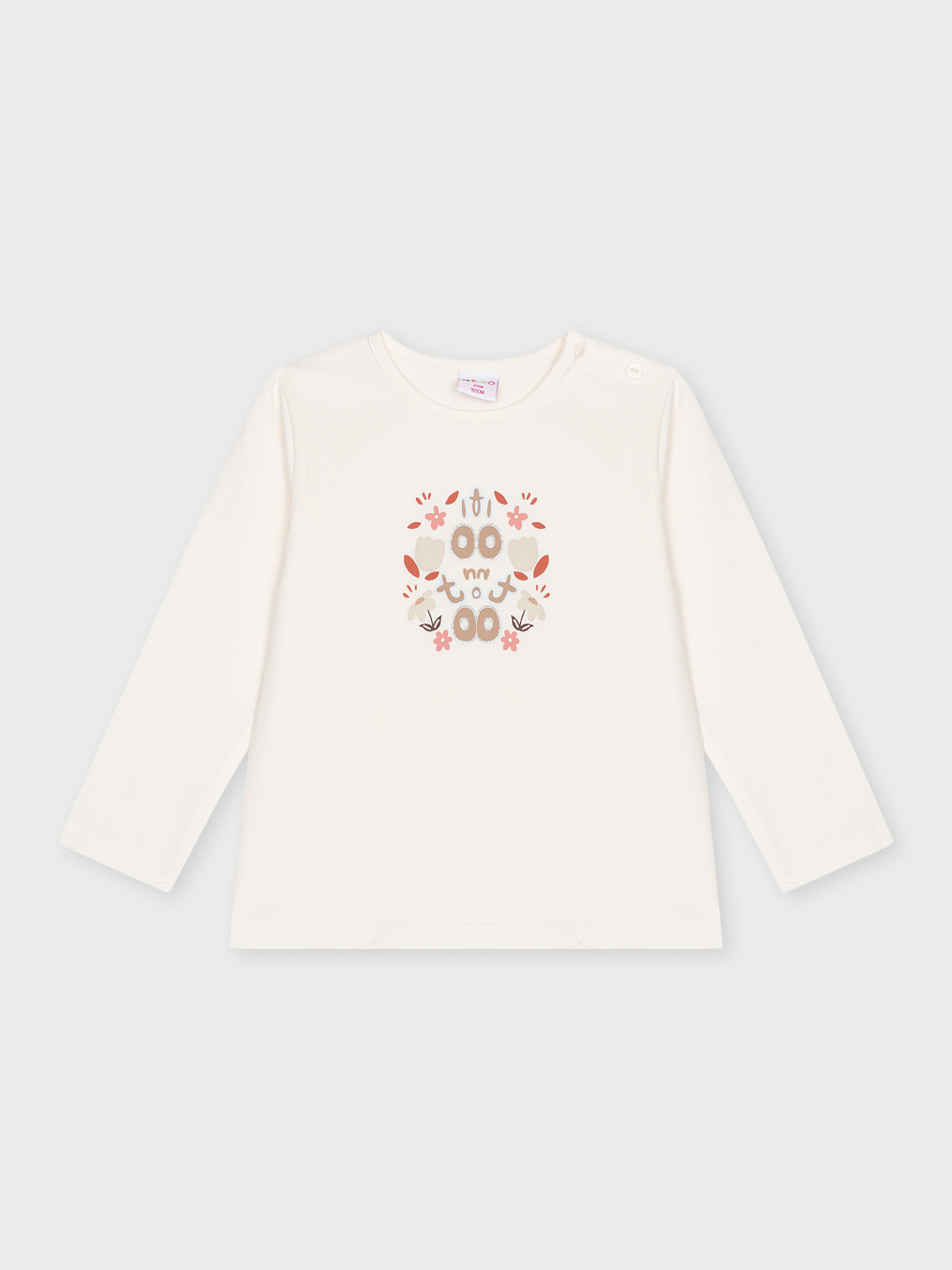 Βρεφική λευκή μακρυμάνικη μπλούζα με σχέδιο με γκλίτερ στο μπροστινό μέρος.