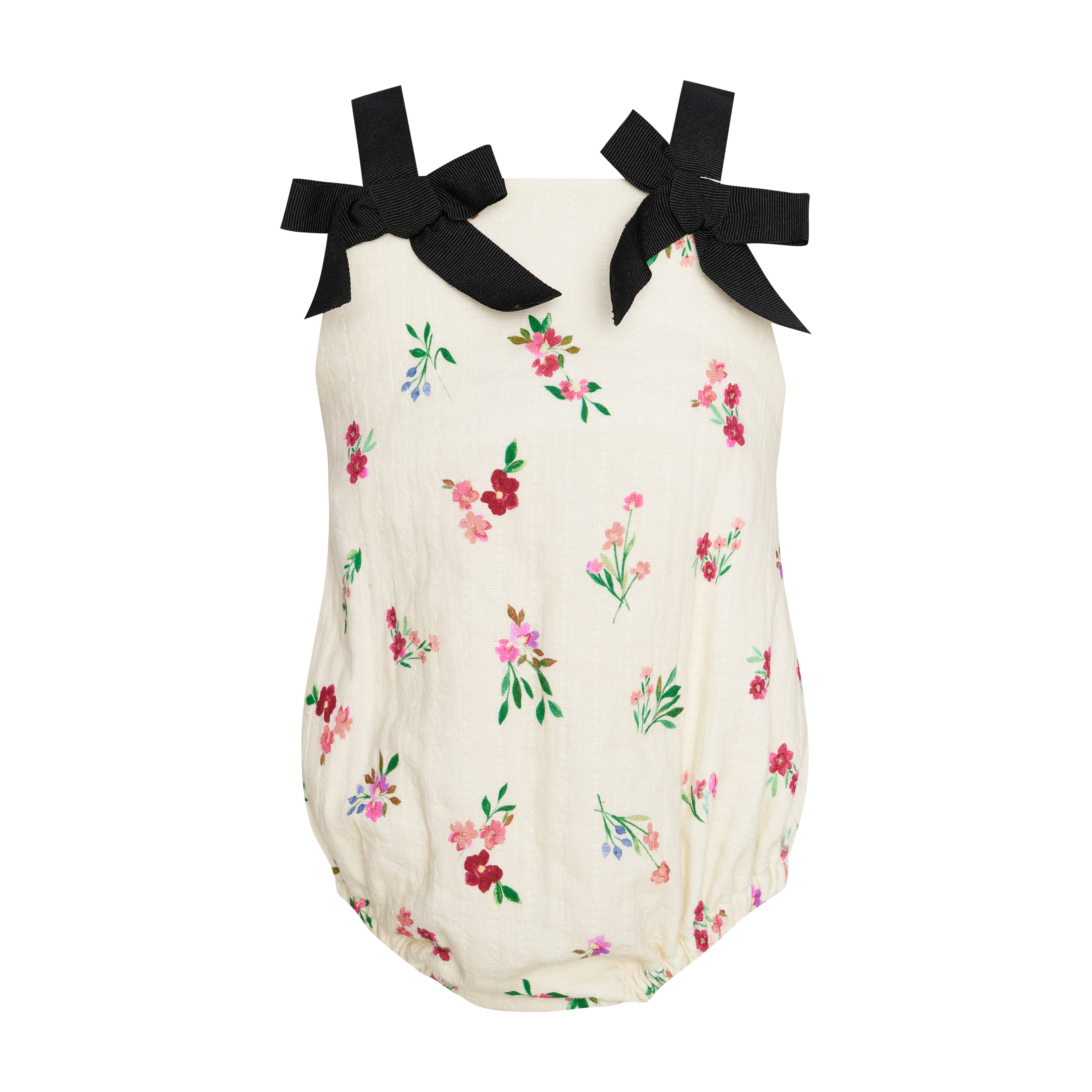 Βρεφικό ολόσωμο με σχέδιο λουλούδια και μαύρες τιράντες.