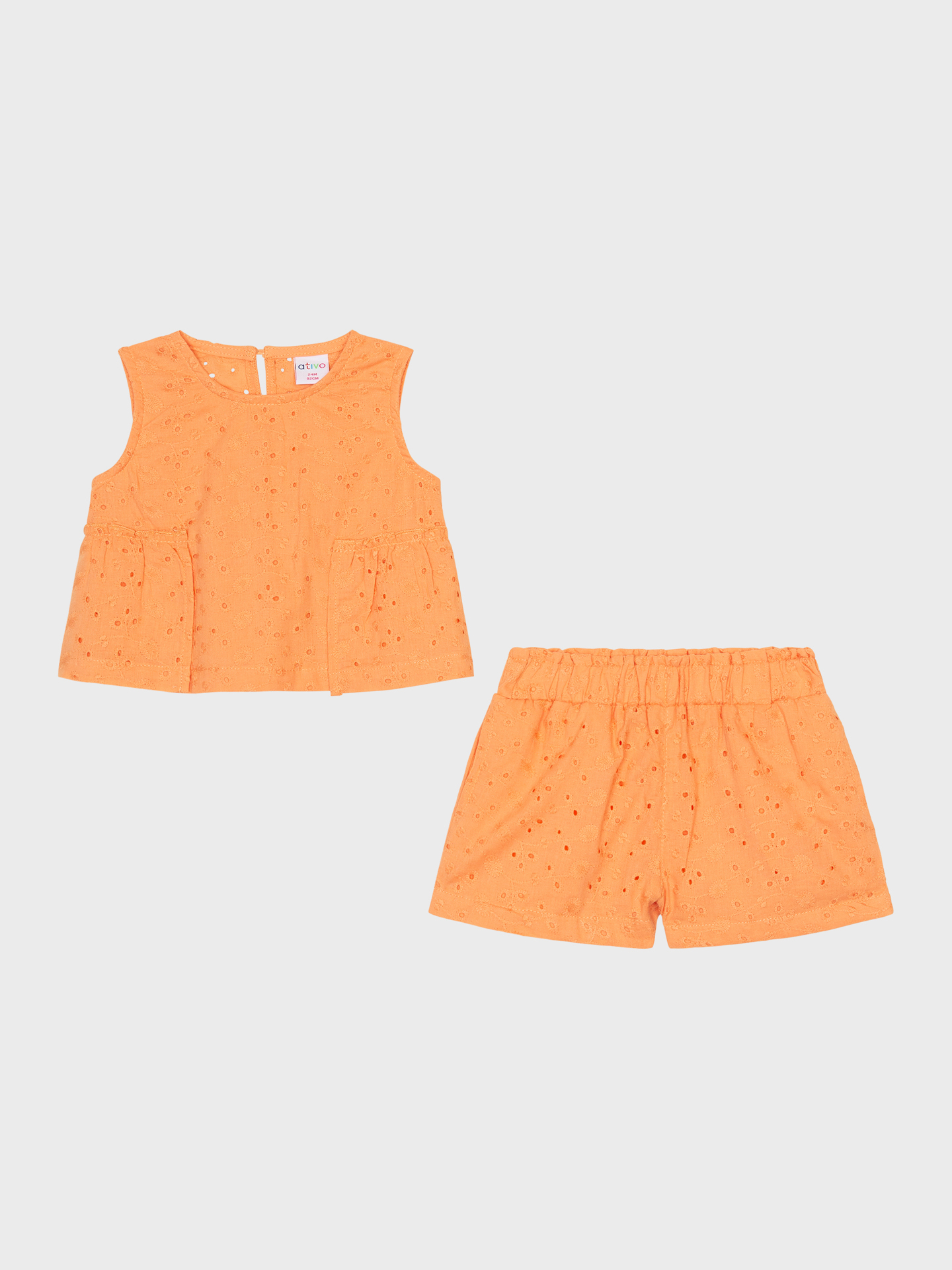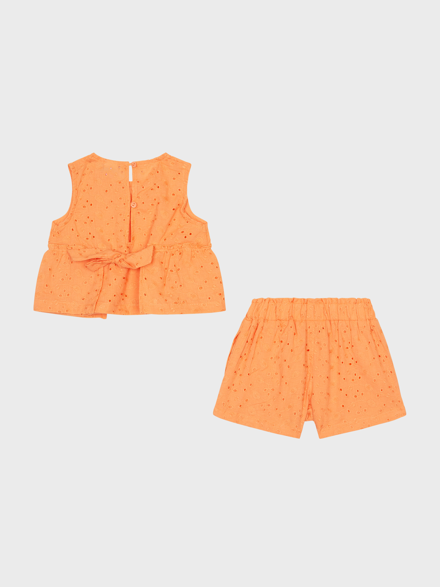 Βρεφικό καλοκαιρινό σετ με διακριτικό κεντητό μοτίβο λουλουδάκι. Αμάνικη μπλούζα και σορτσάκι με ελαστική μέση