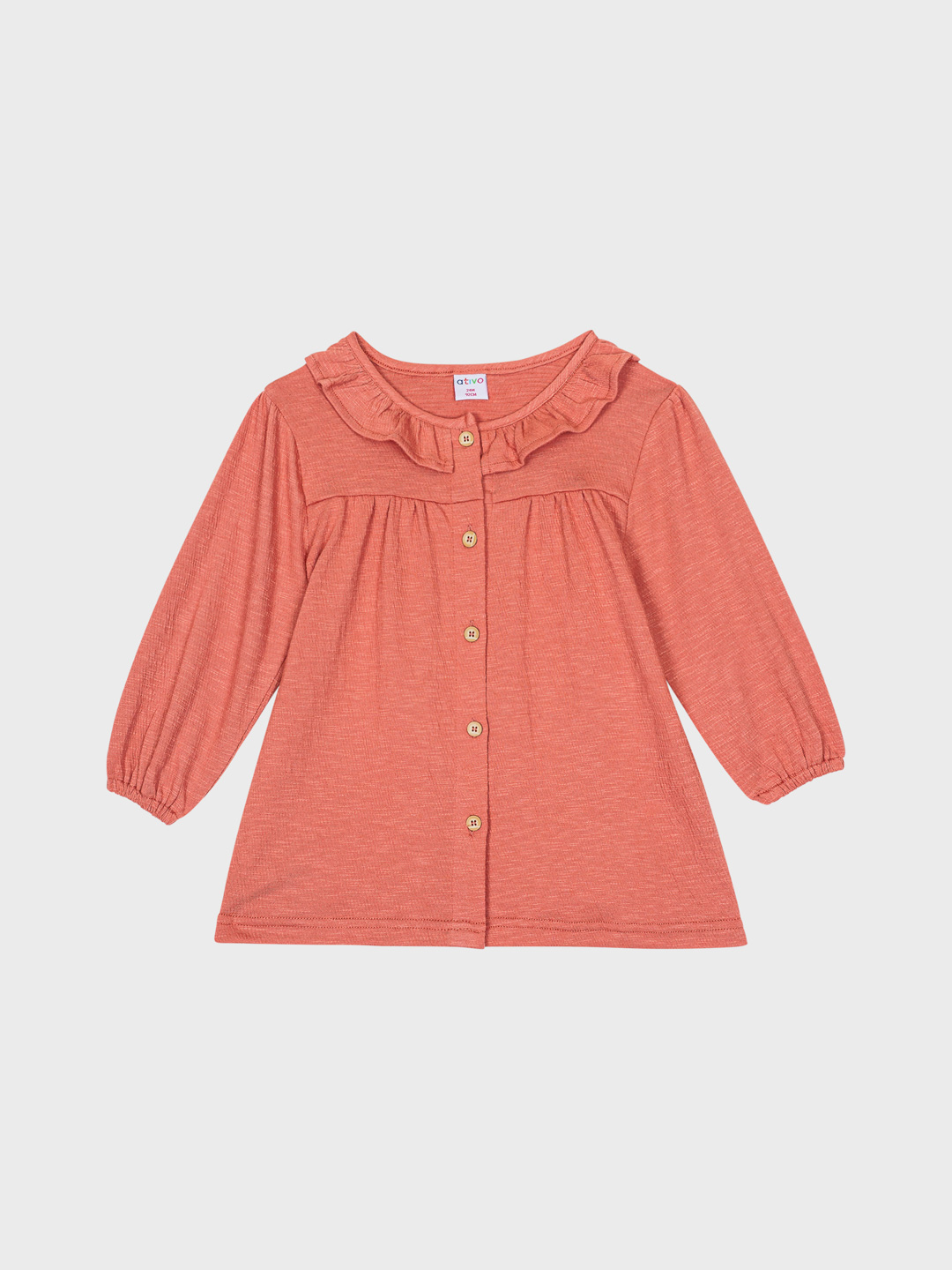 Βρεφικό φόρεμα με μακρύ μανίκι και κουμπιά στο μπροστά μέρος και βολάν στον γιακά