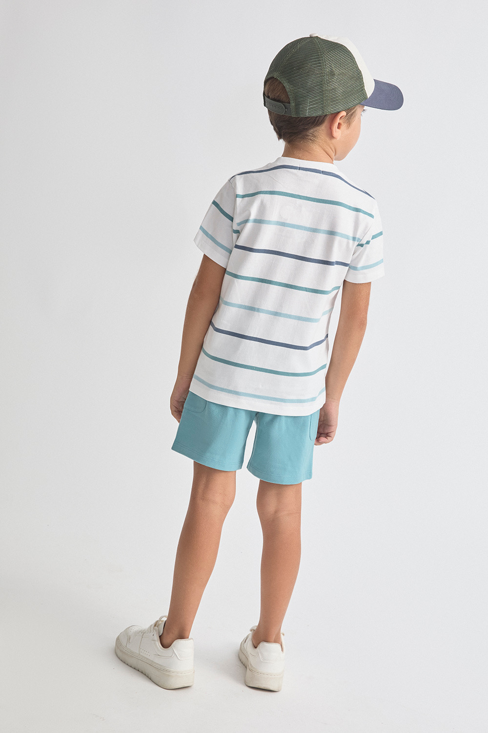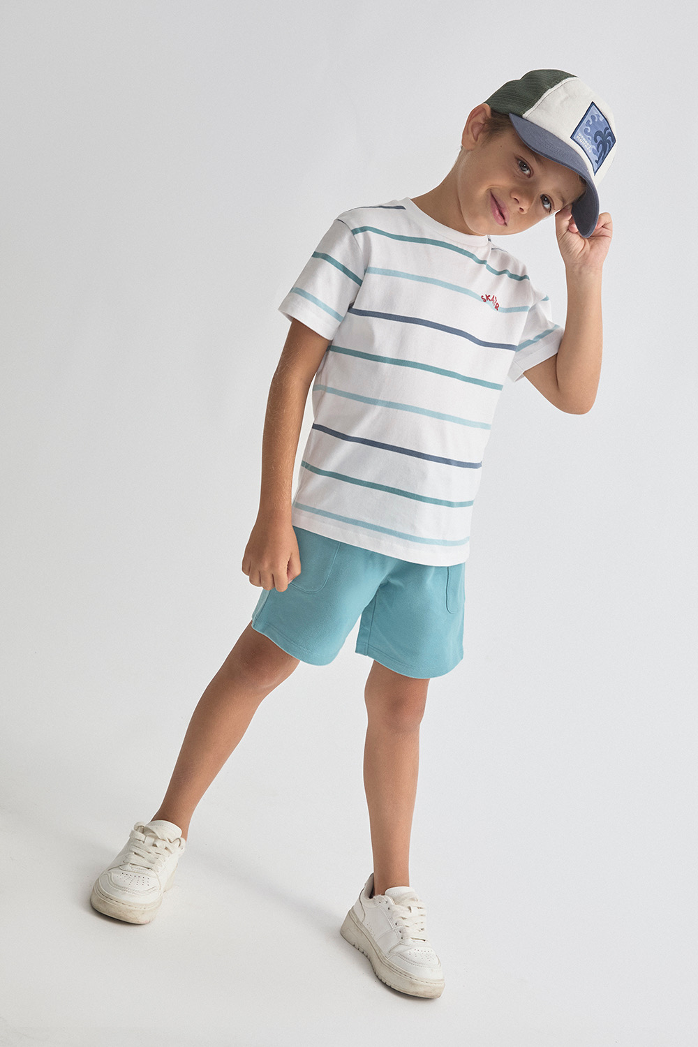 Σετ λευκή κοντομάνικη μπλούζα με ρίγες και γαλάζια βερμούδα.