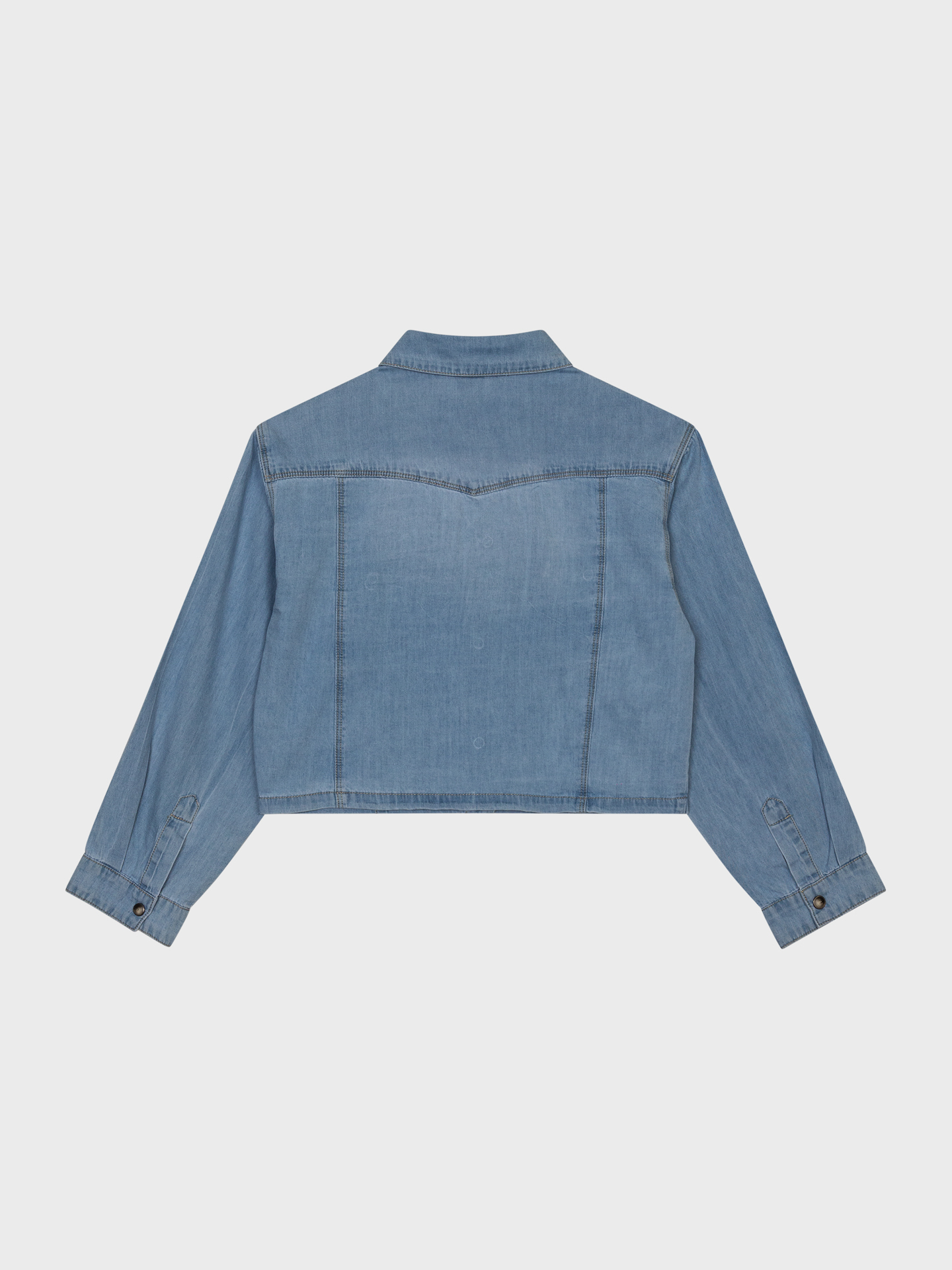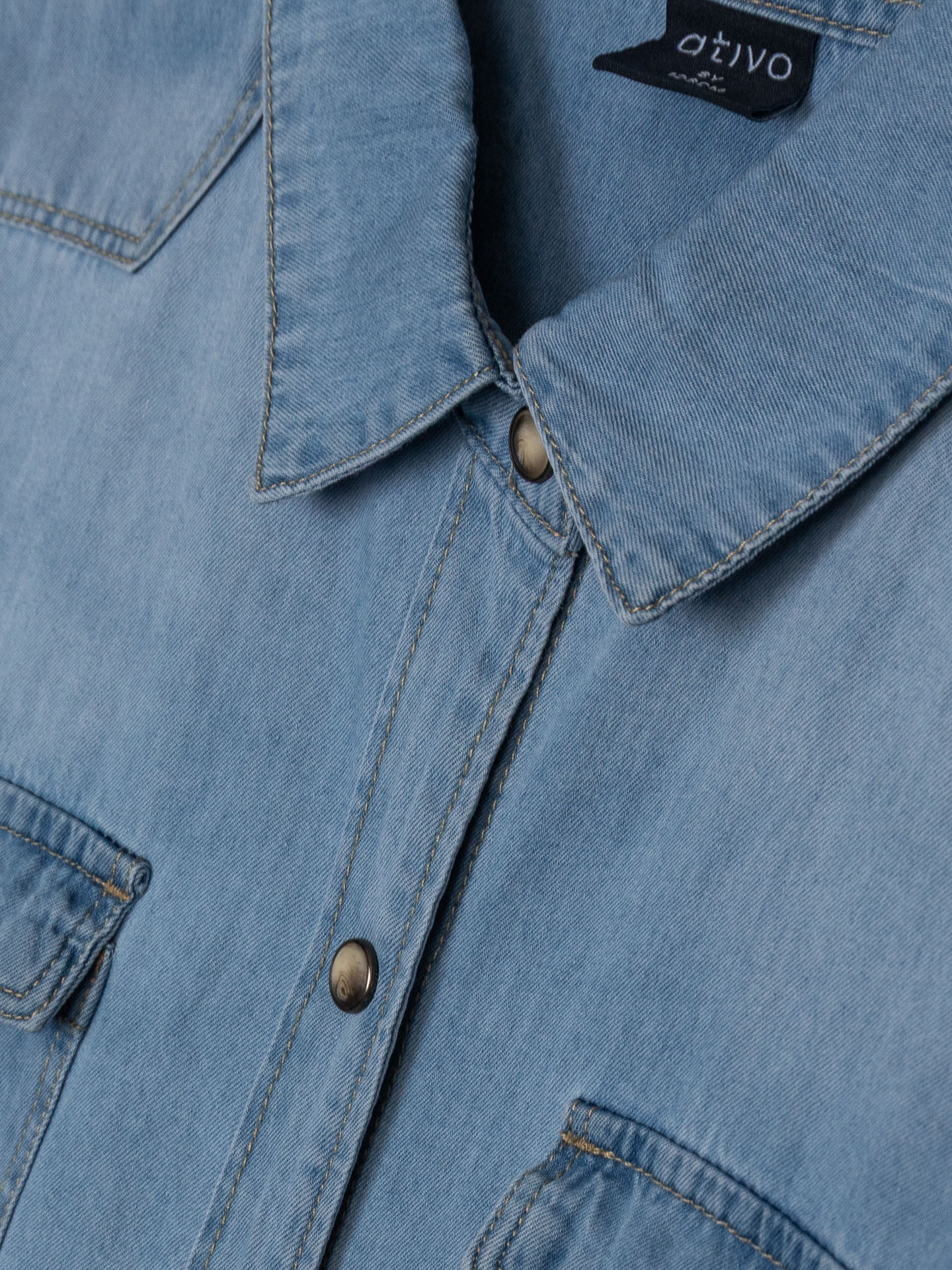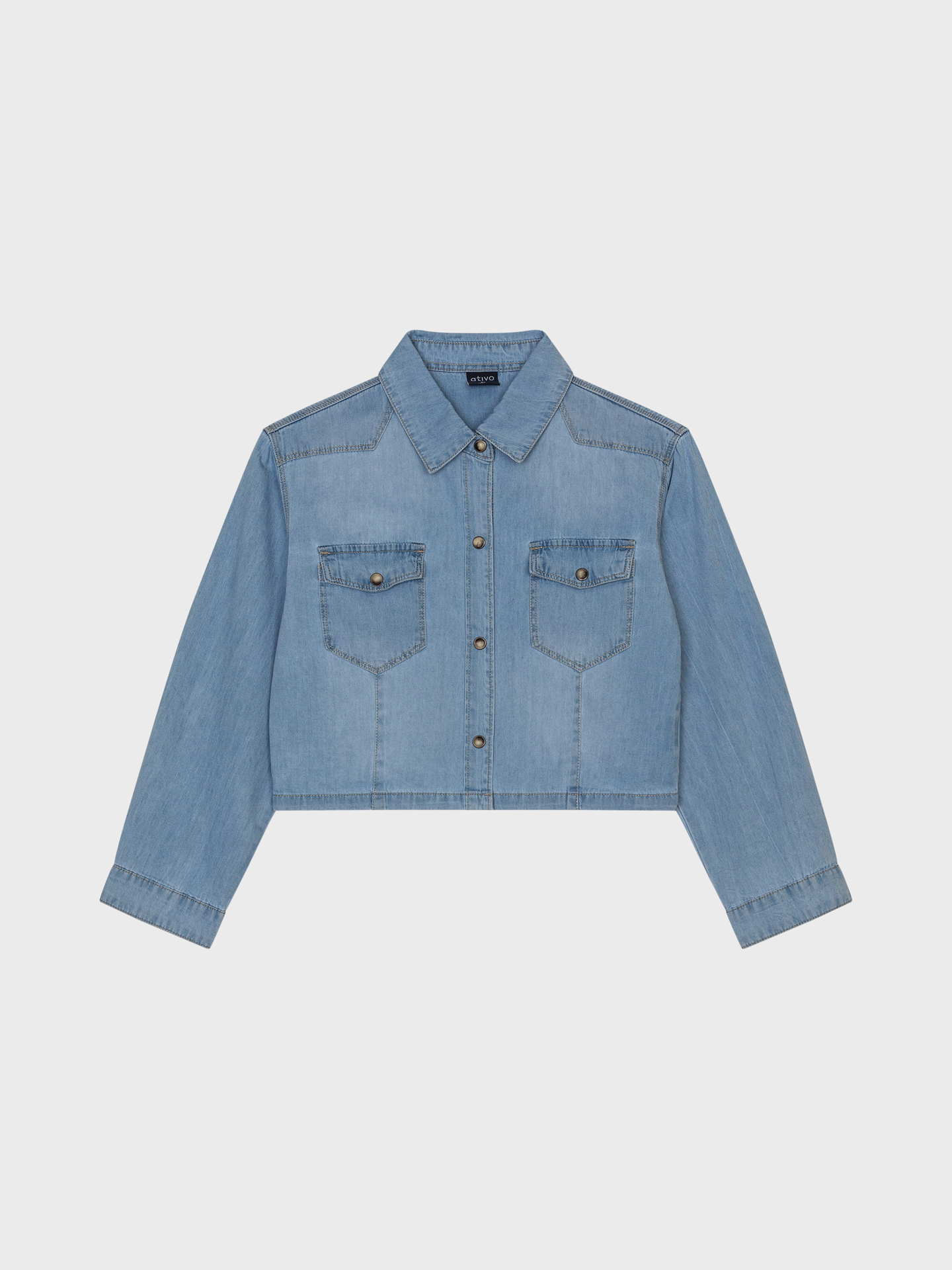 Blue denim πουκάμισο crop σε φαρδυά γραμμή και μακρύ μανίκι