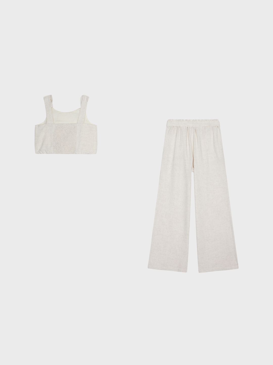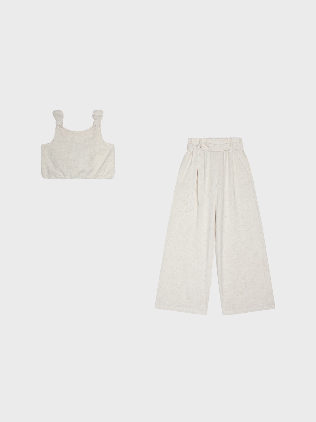 Λινό μπεζ σετ κροπ τοπ & ψηλόμεση παντελόνα σε ίσια γραμμή.