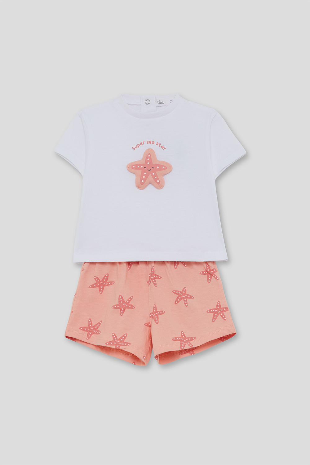 Σετ με λευκή κοντομάνικη μπλούζα με σχέδιο αστερία και σορτς all over αστερίες