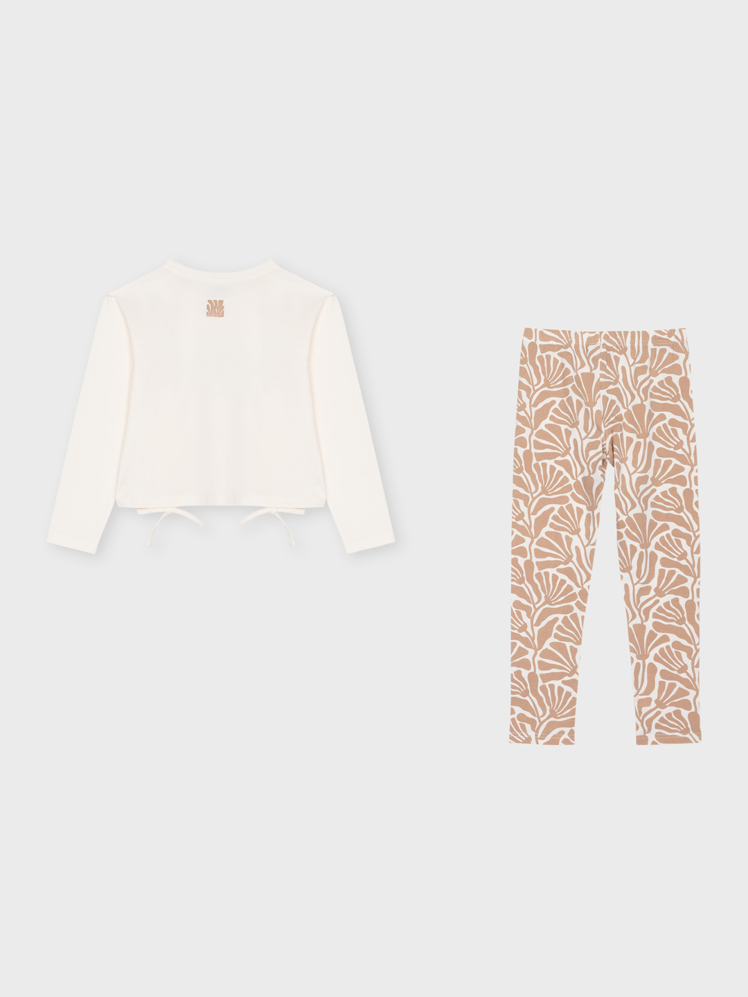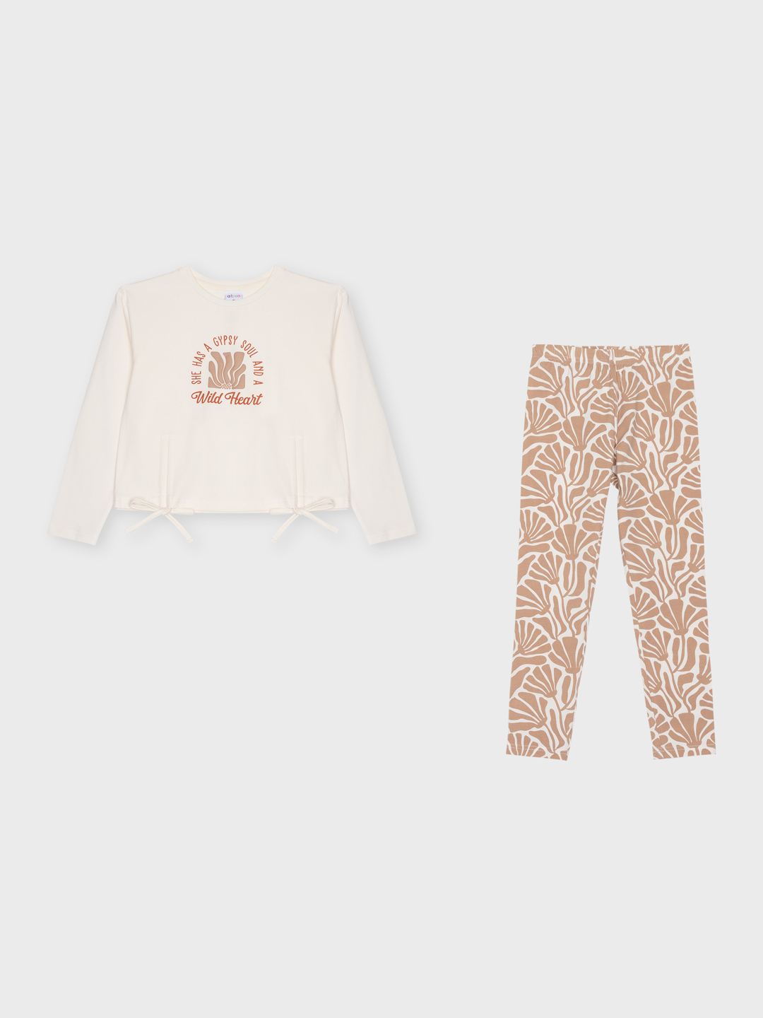 Σετ με λευκή μπλούζα μακρύ μανίκι με σχέδιο και κολάν