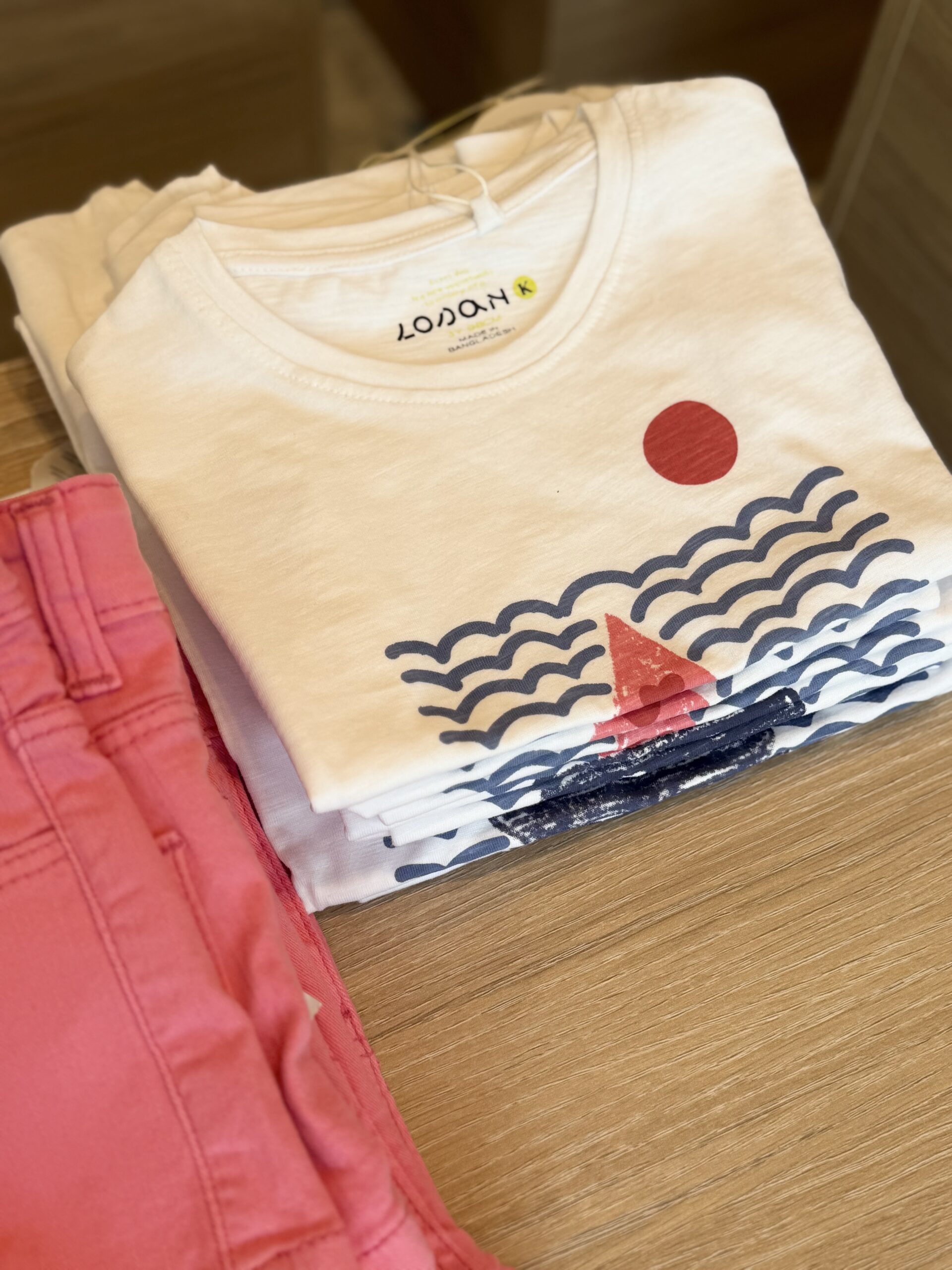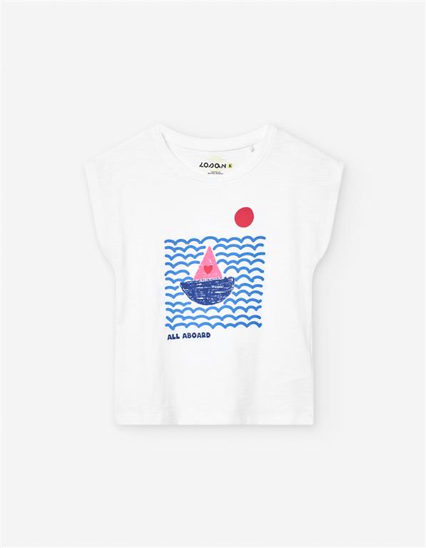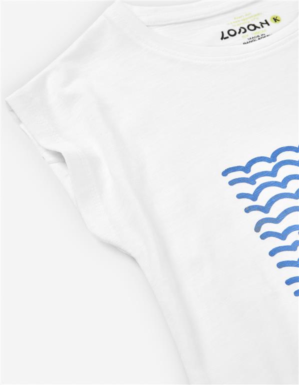 Λευκή κοντομάνικη μπλούζα με σχέδιο στην μέση.
