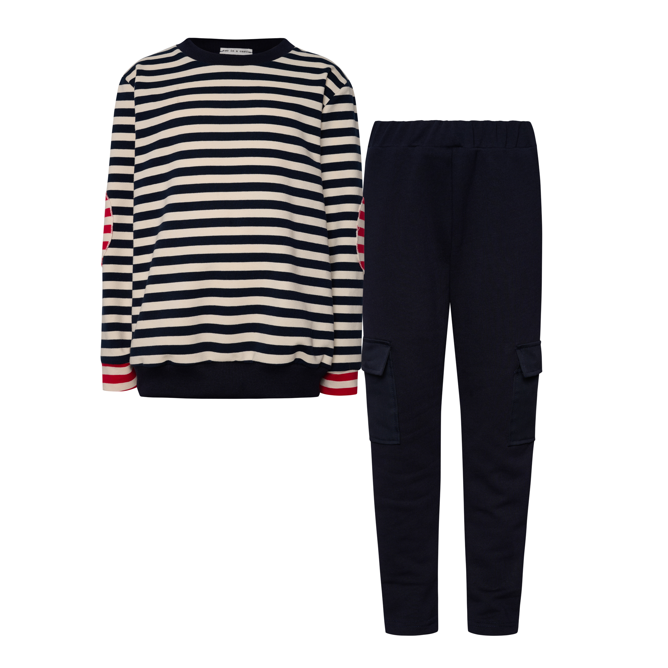 Σετ πλεκτή ριγέ μπλούζα με λαιμόκοψη & μπλε σκούρο μπλε παντελόνι.