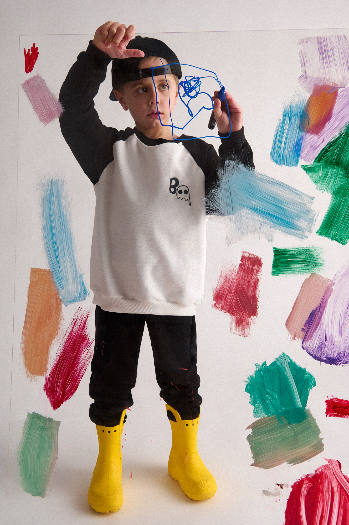 Βρεφικό σετ με φούτερ με κέντημα BOO & slouchy γκρι μαλακό denim.