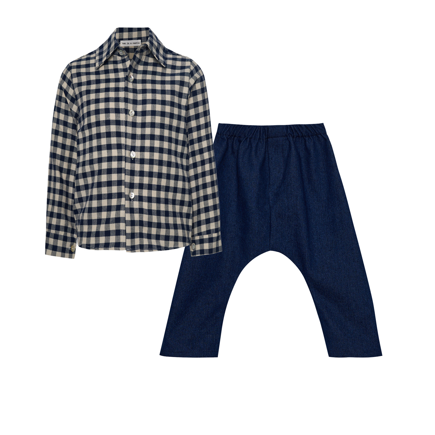 Βρεφικό σετ με καρό πουκάμισο άσπρο-μπλε & μπλε denim μαλακό παντελόνι.