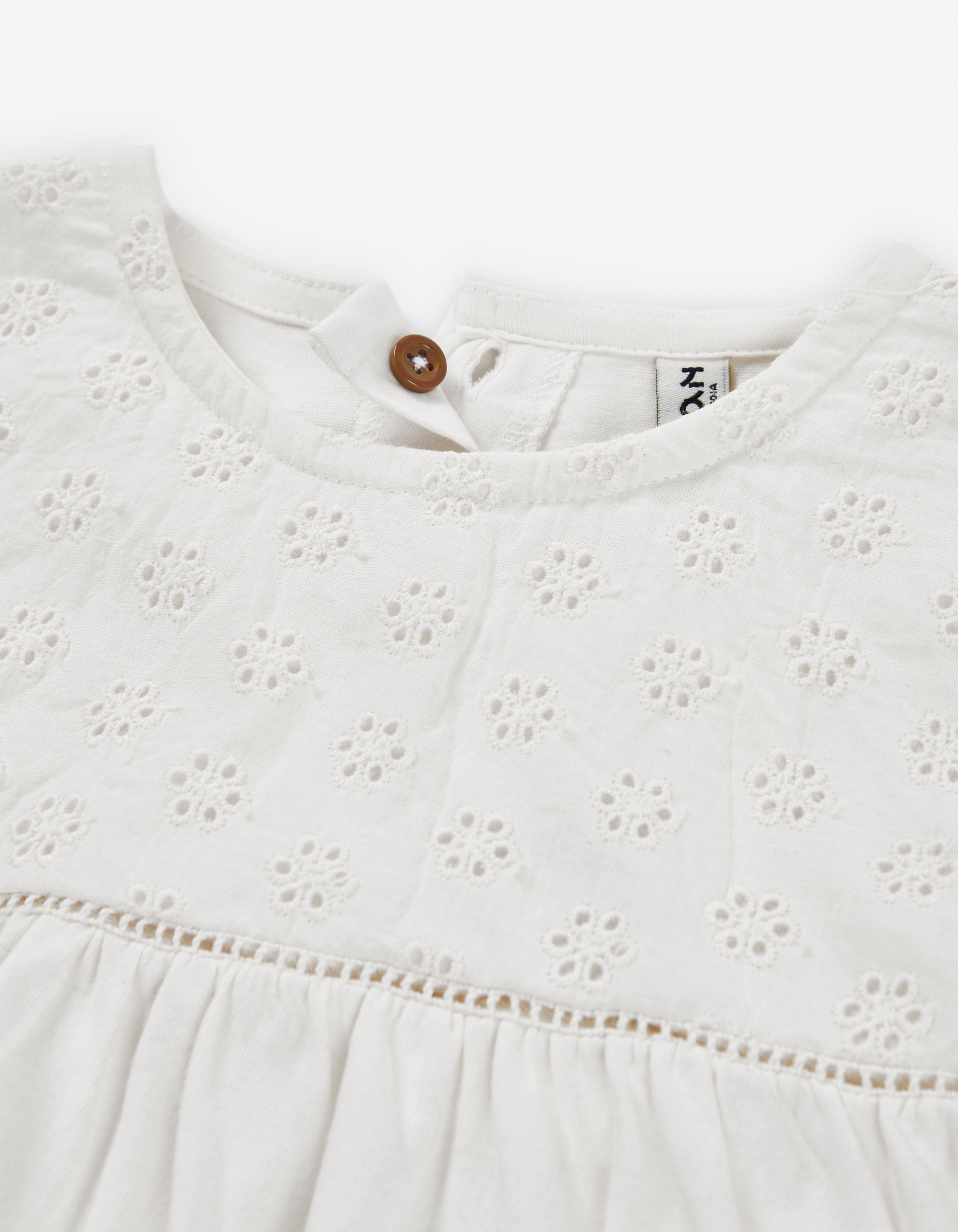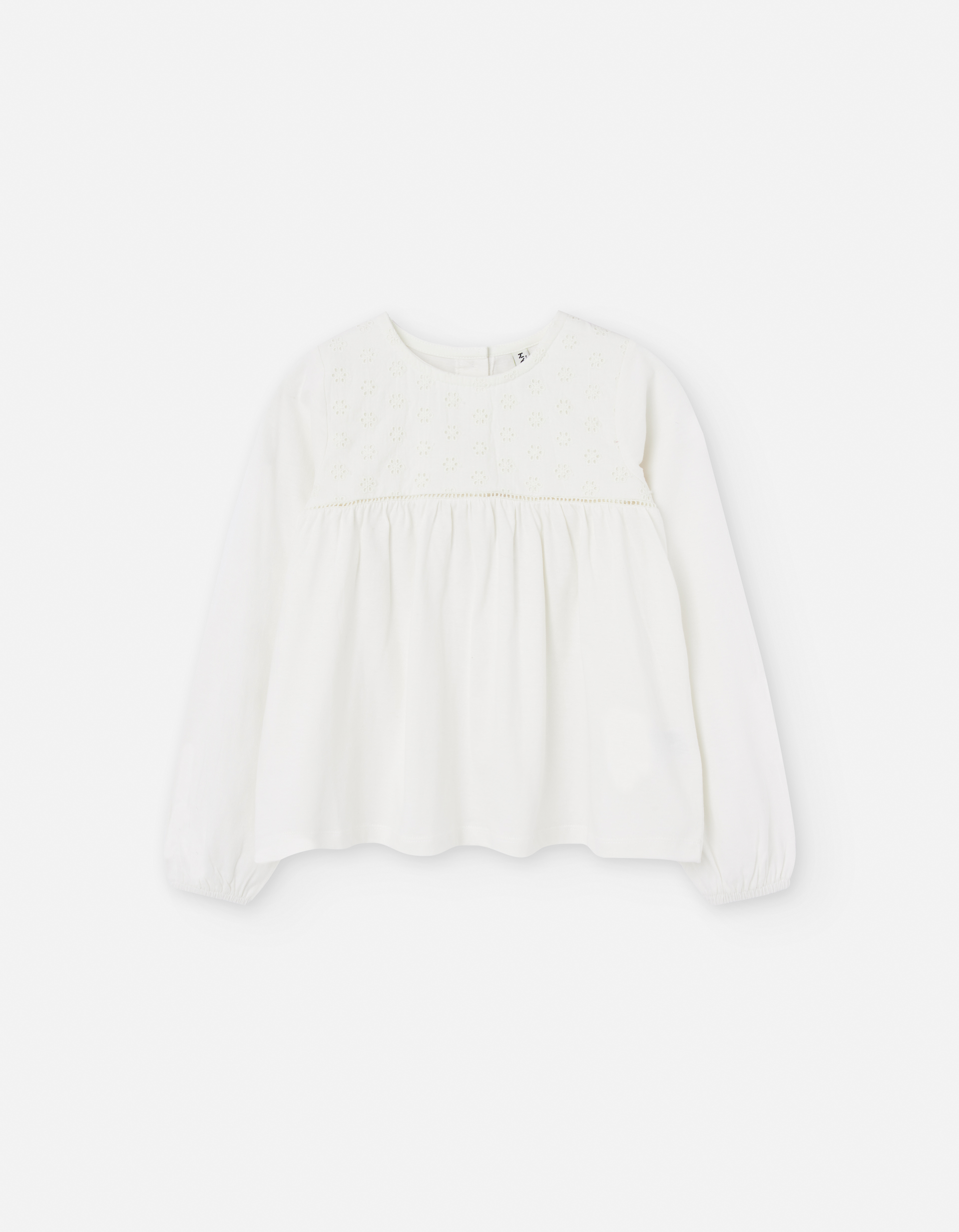 Μπλούζα με μακρύ μανίκι με λάστιχο στο τελείωμα, στρογγυλή λαιμόκοψη και λεπτομέρεια μπροντερί στο πάνω μέρος.