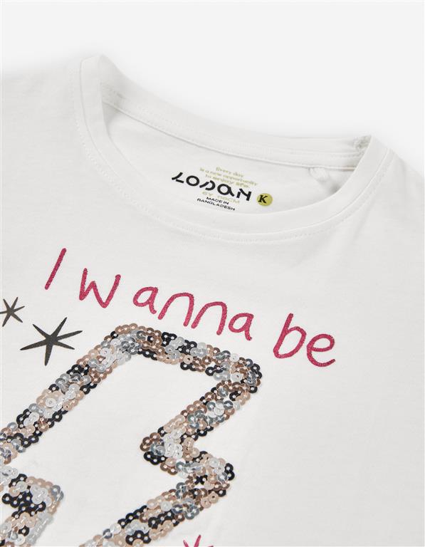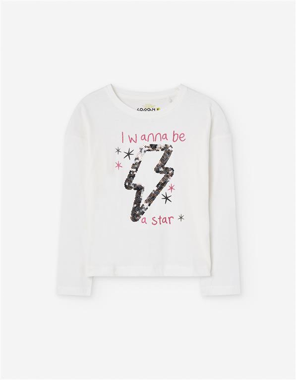 Λευκή βαμβακερή μπλούζα με σχέδιο στο μπροστινό μέρος με παγιέτες.