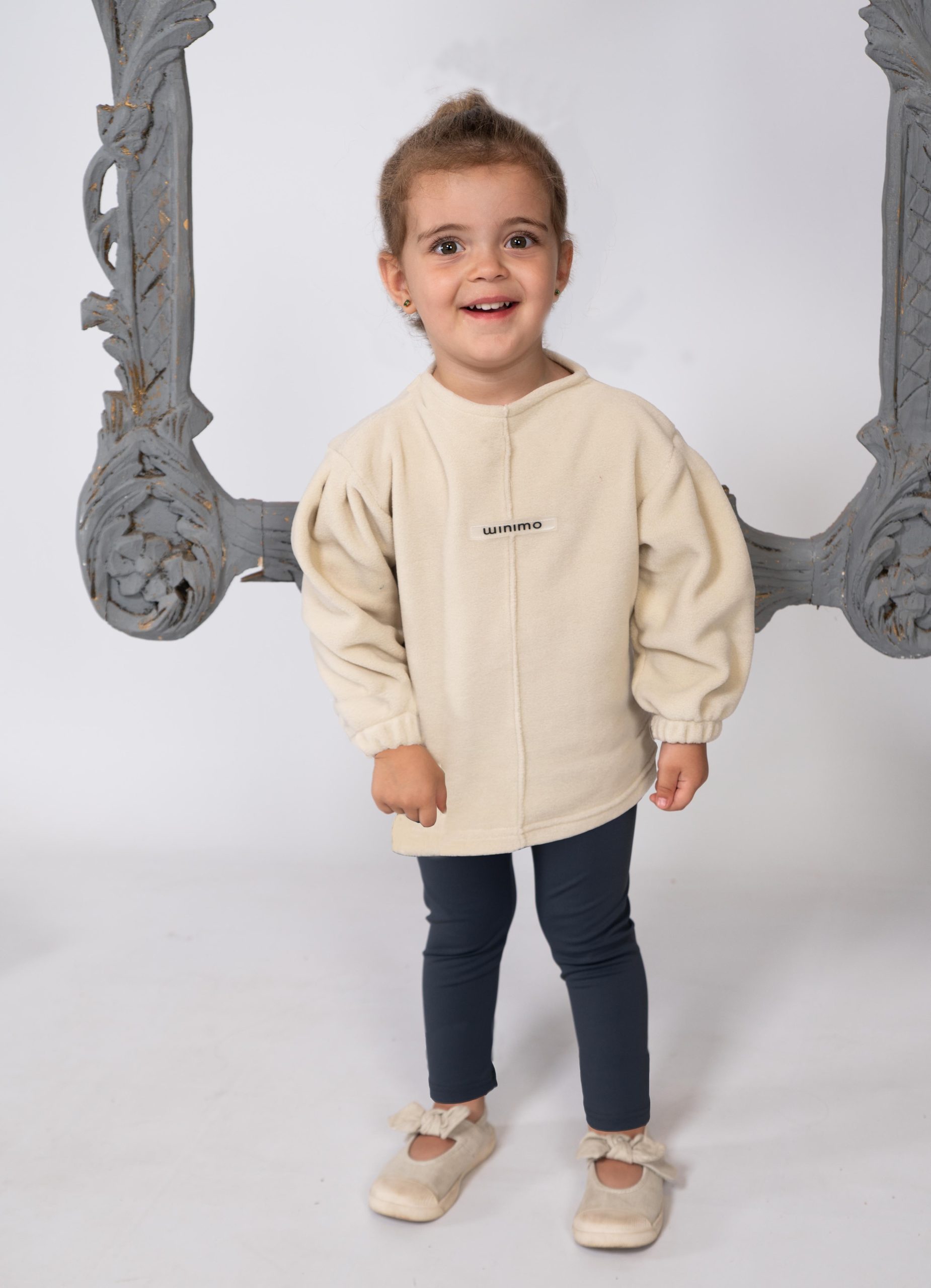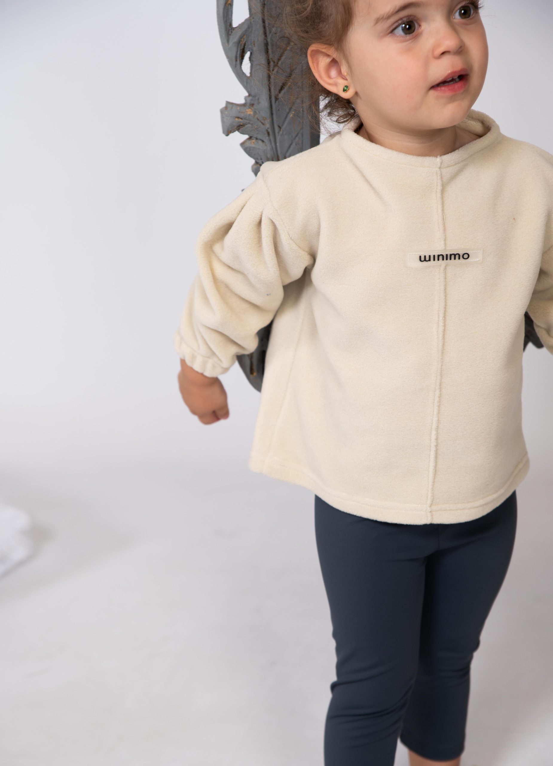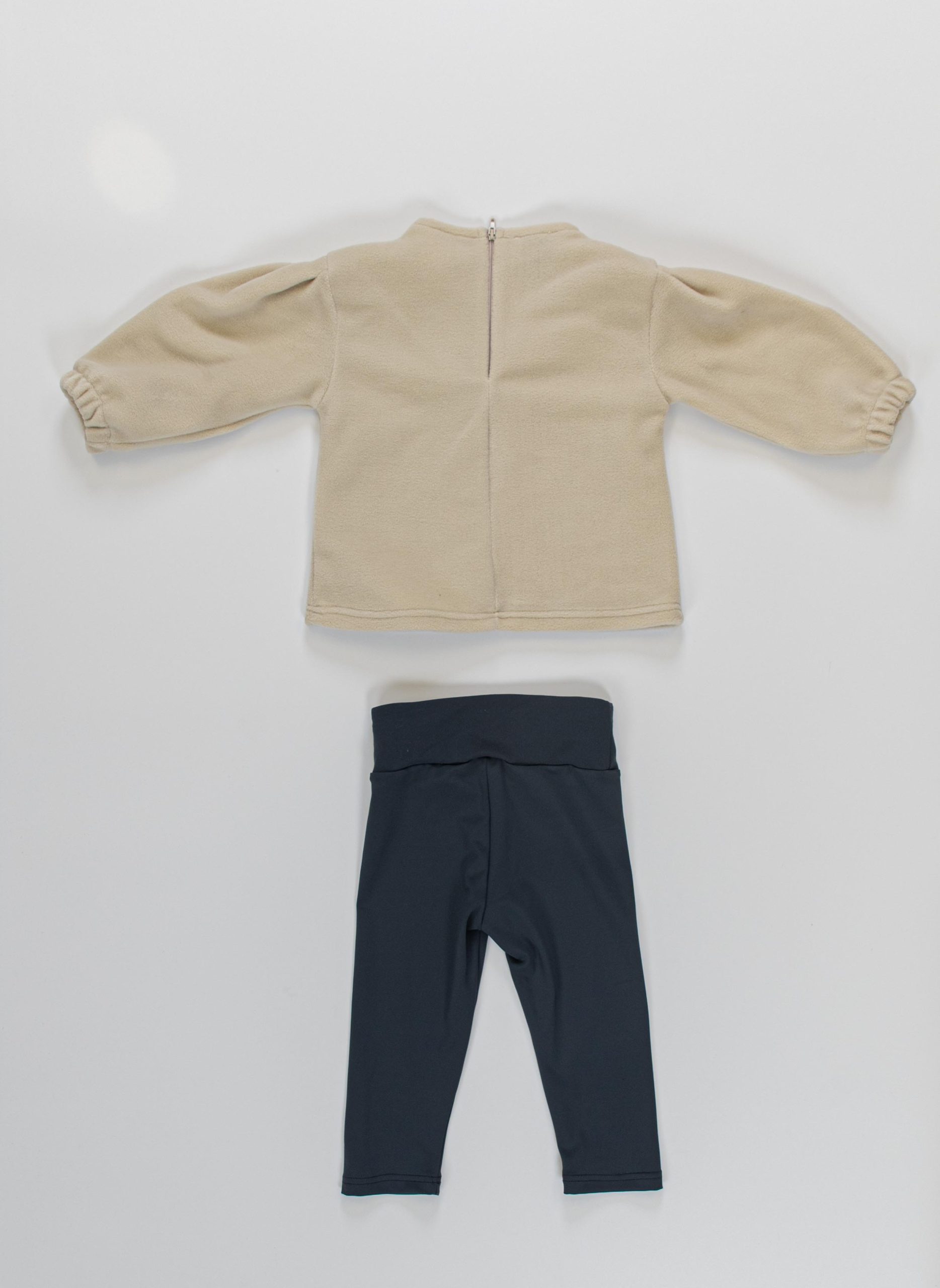 Σετ fleece μπλούζα σε εκρού χρώμα με στρόγγυλη λαιμόκοψη και κλείνει στην πλάτη με φερμουάρ & κολάν σε γκρι μπλε απόχρωση.